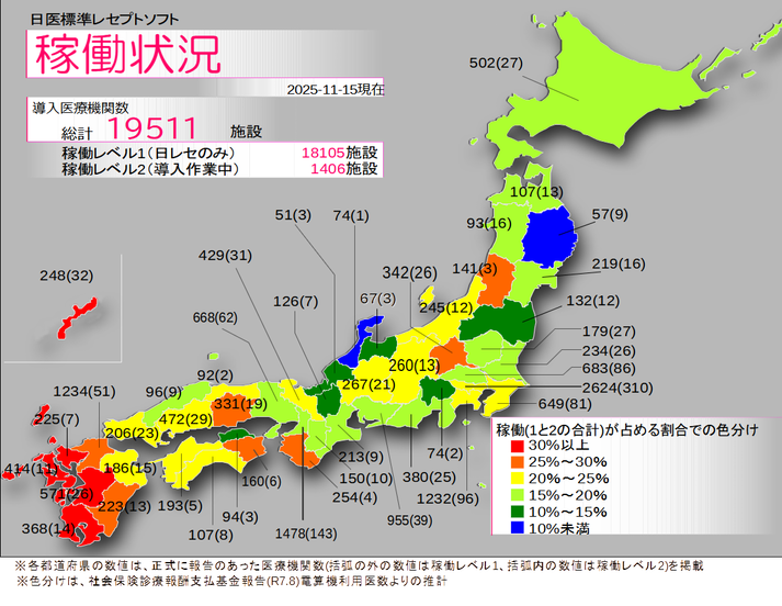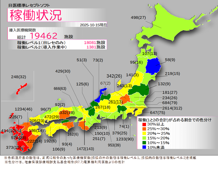 - 2025-10-22:稼働実績◆令和07年10月(実運用18,081施設、導入作業中1,381施設)